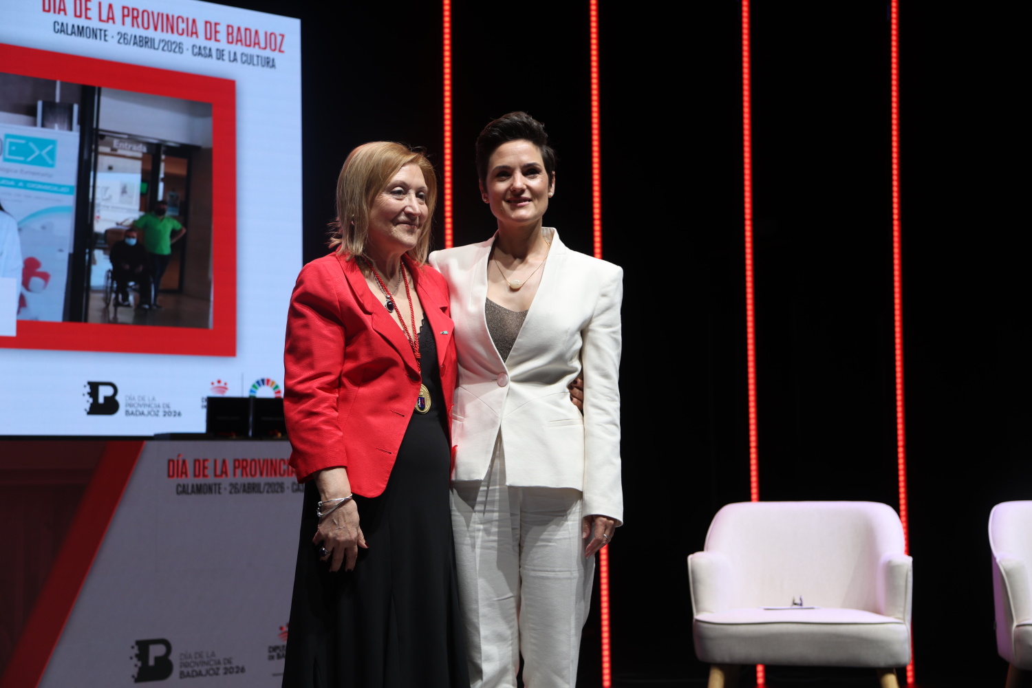 La Casa de la Cultura de Calamonte ha acogido hoy el acto institucional del Día de la Provincia, organizado por la Diputación de Badajoz, con la entrega de las Medallas de Oro de 2026, en una jornada que ha reunido a representantes institucionales, sociales y económicos de Extremadura. Las máximas distinciones provinciales han recaído en la diseñadora Marina Conde ‘La Condesa’, la Asociación Oncológica Extremeña (AOEX) y la entidad Cajalmendralejo. Durante su intervención institucional, la presidenta de la Diputación, Raquel del Puerto, ha subrayado que estos reconocimientos representan “a los mejores exponentes que tenemos, que destacáis por vuestro talento, esfuerzo, compromiso y trabajo con ejemplaridad y trascendencia, que están transformando una provincia mejor”.